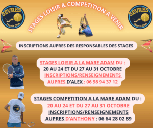Secrétariat ouvert du Lundi au Vendredi de 10h à 17h / tennis-club-de-sevres@orange.fr / Fermetures : le Samedi / Jours fériés / Vacances Scolaires